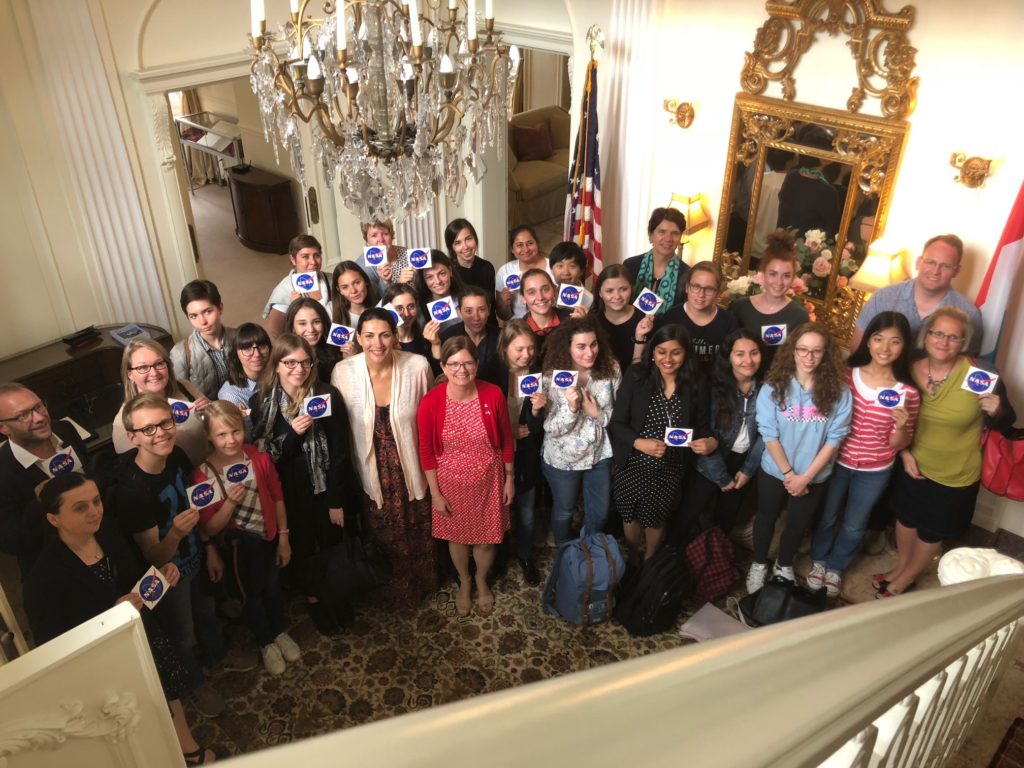 WIDE had the chance to meet the scientist at the US Embassy in Luxembourg. Over 30 people invited by WIDE were present during this afternoon. After a presentation by Mrs Nancy Searby were she highlighted her work during her over 23 years at the NASA, high school girls and young women present were able to ask questions to Mrs. Searby, in order to know her background and to know more about her.